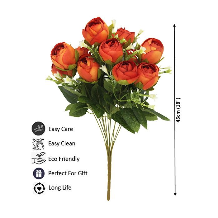 The rose is the national flower. People believe that the rose is the embodiment of love, peace, friendship, courage and dedication. Rose is a beautiful and romantic flower that represents love. Place it on your accent or on dining table and see how it can help add value and aesthetic appeal to your space. These are looking realistic natural even people calls with Artificial Orange Flower.