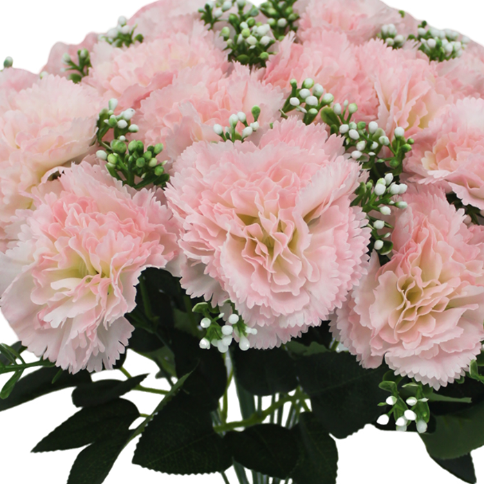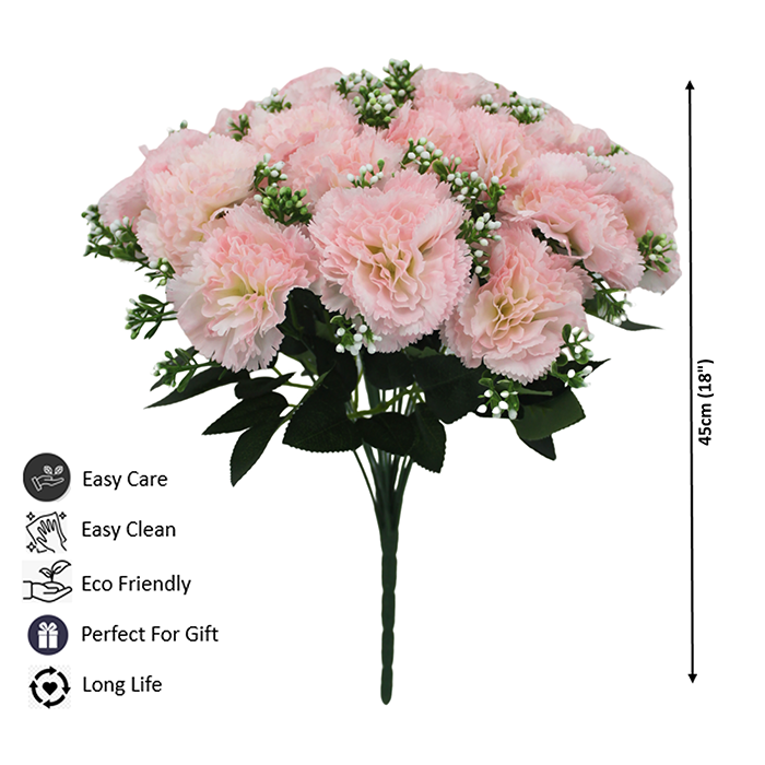 Big Bunch of Artificial Pink Carnation Flowers with Buds and Green Leaves (18 Heads)