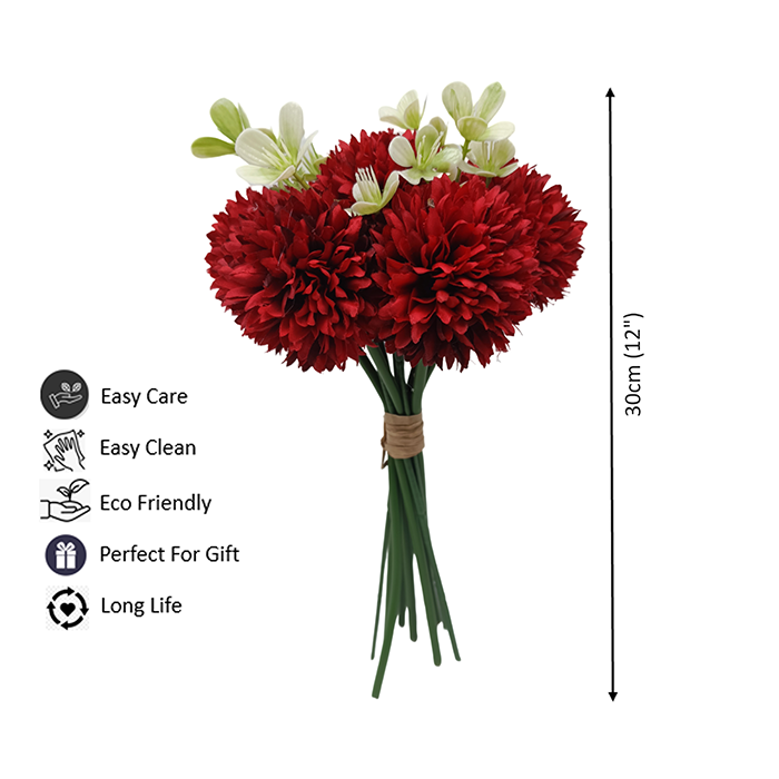 Bunch of Artificial Red Ball Flowers (5 Heads)