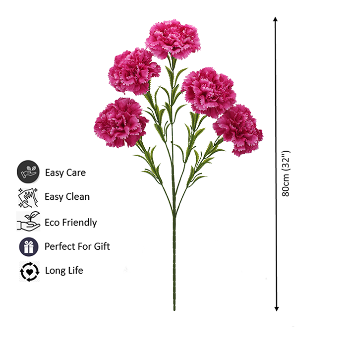 Bunch of Artificial Rosa Carnation Flowers (5 Heads)